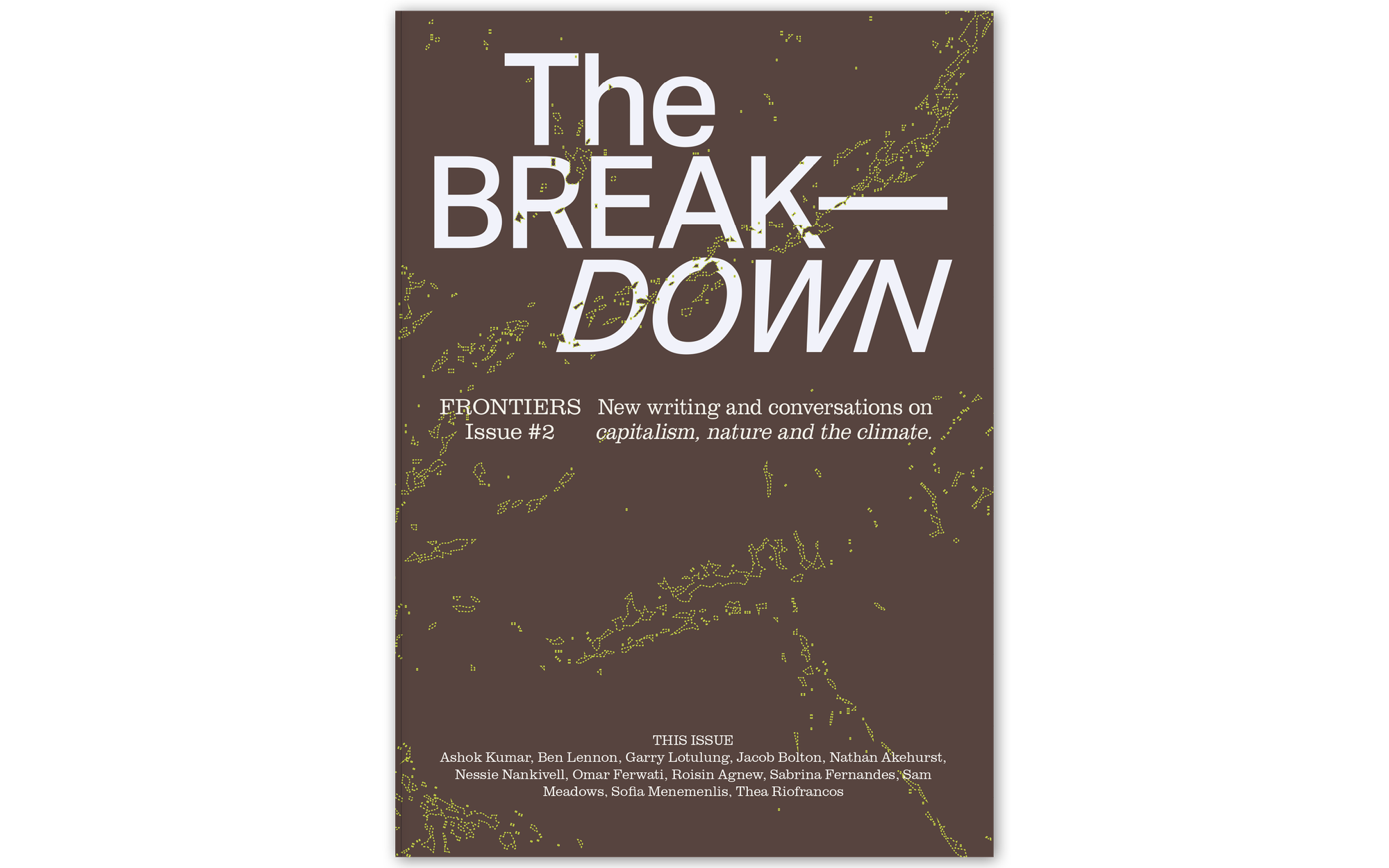 The idea of the frontier is contested: a border, a terra nullius, a site of struggle. In our second Issue, our writers approach the idea of frontiers in the climate crisis from many perspectives, sending reports from the frontlines of extractive industries, exploring new avenues of risk and resistance, and showing, in the words of contributor Thea Riofrancos, how frontiers are “never exhausted by the economic and political imperatives that designate them as such. They exceed them.”