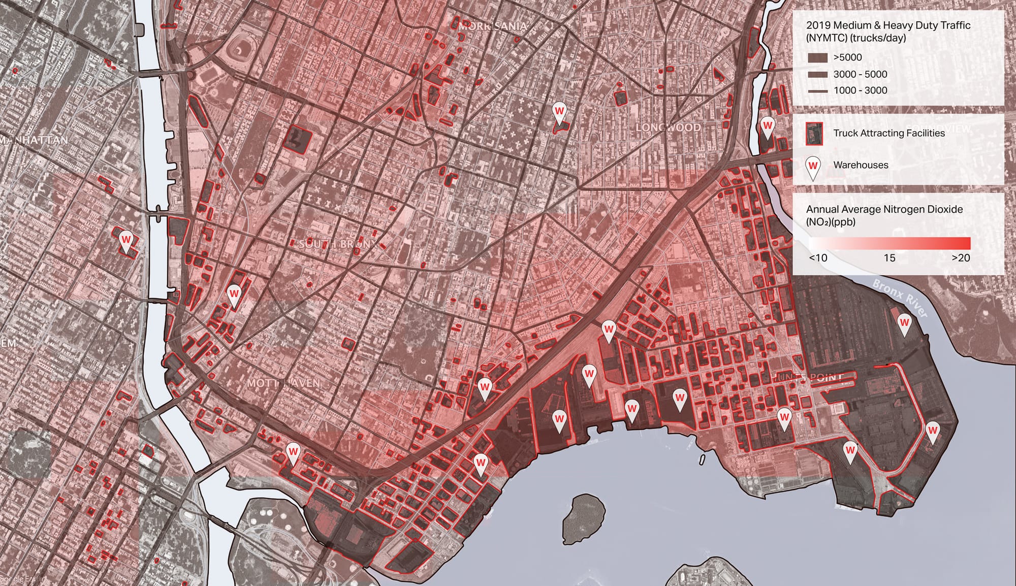 There is, however, a tension here. As urban planner Katie Mulkowsky writes, “The temporality of urban planning—the distance between a decision and its delivery, and then its real impacts—means that, especially when it comes to environmental health issues, the consequences of top-down land-use rulings might be seen in full only too late, by the generations that follow.” This is the gulf that divides the people who decide industrial policy and those who pay the cost of its environmental burden. New York is the US’s most densely populated city; its manufacturing and logistics sites, integral to the city’s functioning, must exists alongside an often-large local population.